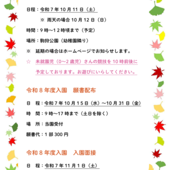 保護者の方のご要望にお応えし、令和 7 年 10 月より 2 歳児預かり保育を開始致します。